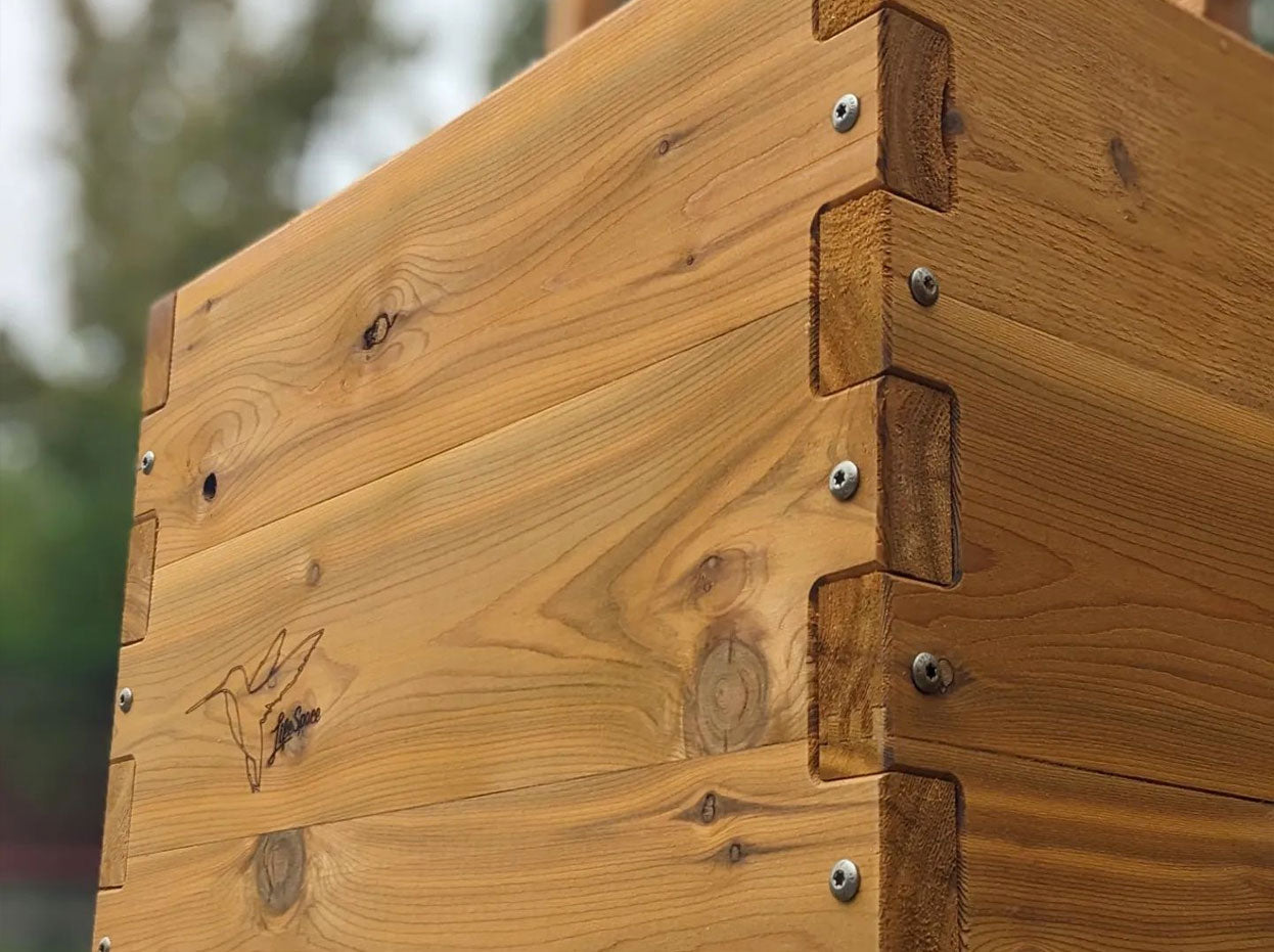 LifeSpace Gardens are crafted from locally harvested cedar and hemlock. These beautiful wood species add a natural aesthetic that is more appealing to the human senses than any other building material. Rot proof construction ensures that all woodwork is completely protected from the inside out. The food-safe waterproof liner ensures soil and water never come in contact with the wood. This can double or triple the lifespan of your garden, making your cedar or hemlock planter longer lasting and more resilient than most metal or synthetic options.